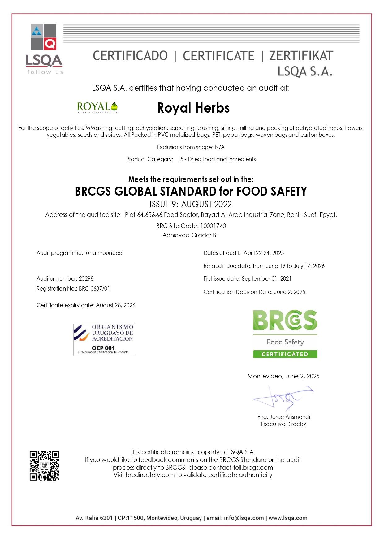 Certified to meet the rigorous global standards (FSMA Requirements) for food safety, quality, and operational excellence. This certification assures that products are produced under strict safety protocols, providing consumers with confidence and trust in every item.